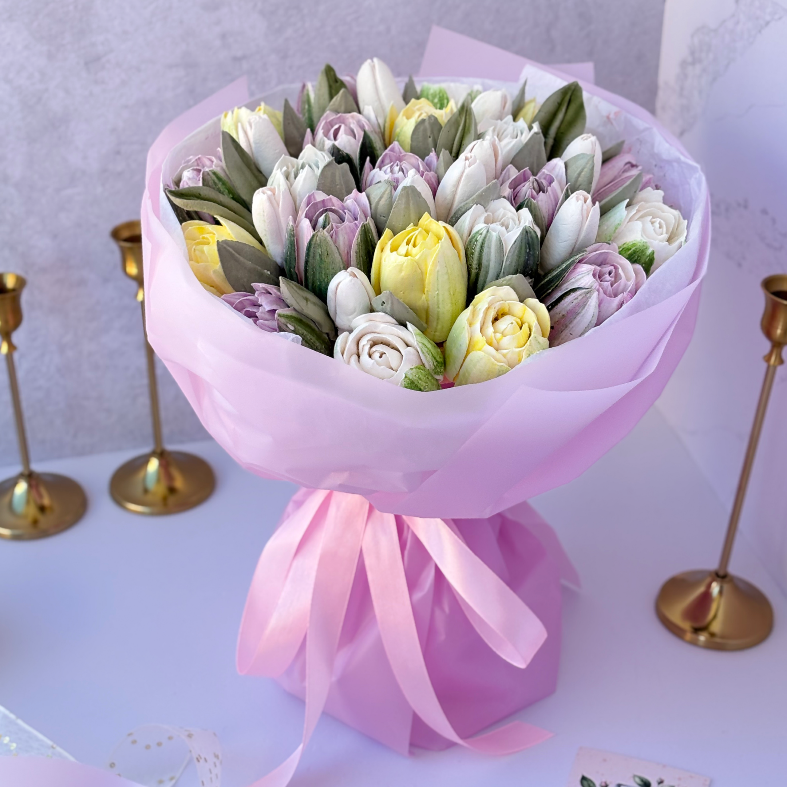 Зефирные тюльпаны в индивидуальной упаковке идеально подходят для корпоративного подарка